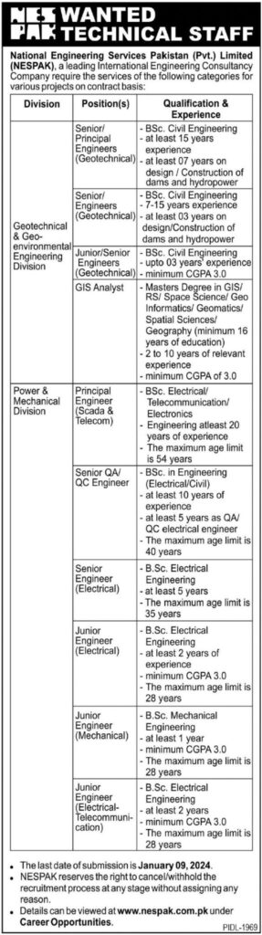 Nespak career aspirants are encouraged to go through this position. People from all regions of Pakistan are invited to apply for these posts within the stipulated period.