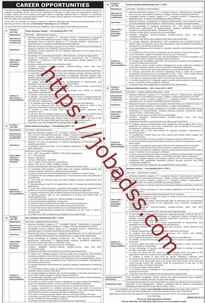 In 2024, the National Bank of Pakistan has provided employment opportunities that highlight its commitment to national development, sustainable development and economic prosperity of the country. As the country’s first and largest bank, the National Bank of Pakistan plays an important role in promoting inclusive economic growth. The jobs announced reflect the bank’s dedication to hiring skilled professionals who can contribute to the mission of providing comprehensive financial services and promoting financial stability. By providing employment opportunities, the National Bank of Pakistan seeks to enhance its capacity to meet the diverse economic needs of the population and advance the economic development of the country. Interested individuals are encouraged to explore these employment opportunities as a means of contributing to the bank’s core objectives and being part of the financial outlook.