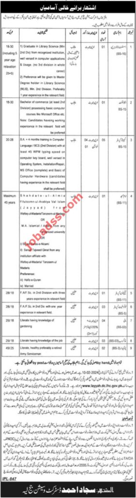 Applicants with different educational backgrounds including B.Com, Intermediate, Primary, BA, Bachelor, MA and BCS can apply for various posts advertised by Judge District and Sessions Judge Layyah, Punjab, Pakistan in 2024. These comprehensive eligibility criteria open up opportunities for candidates with different educational qualifications to play a role within the organization.
