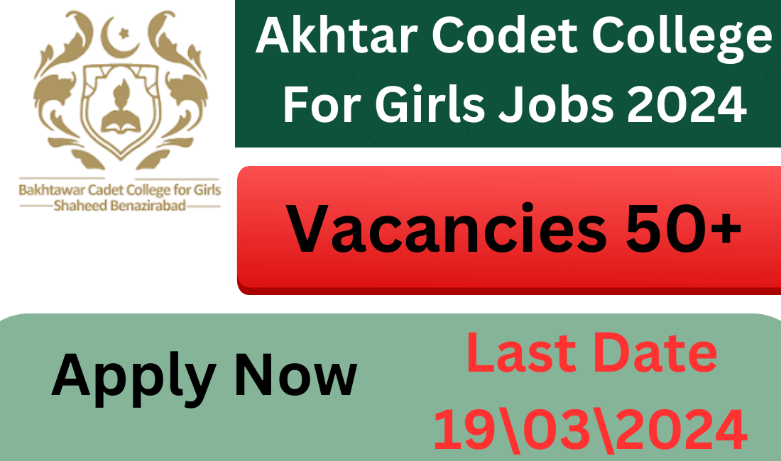 Bakhtawar Cadet College for Girls Jobs 2024 is available for the year 2024 at Bakhtawar Cadet College for Girls in Shaheed Benazirabad, Nawabshah. In this announcement published in the daily Dawn e-Paper on February 19, 2024, applications have been invited for several vacant posts including Women Lecturers, Mess Manager, Lab Assistant, Mess Assistant, Staff Nurse and Lady Sports Instructor. Applicants with qualifications such as master’s or bachelor’s degrees are encouraged to apply. for jobs.