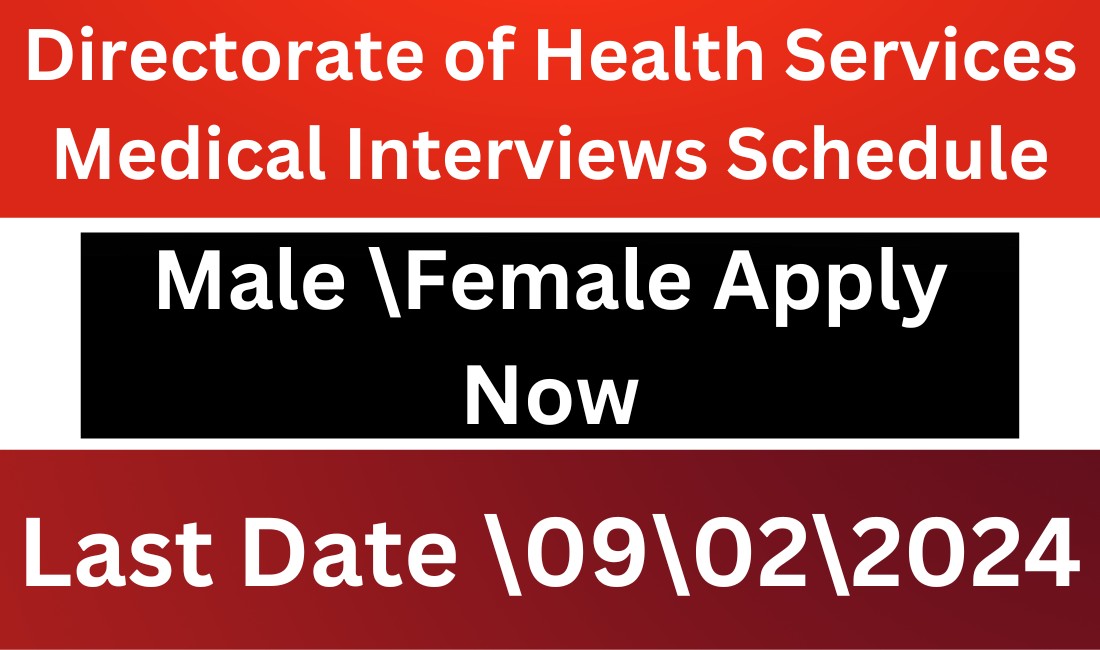 Directorate of Health Services has announced vacancies for various posts including JT Surgery, JMT Mammography, Medical Technician, Lady Health Visitor (LHV), OT Technician, TB Technician, Solar Operator, Endoscopy Technician, Dialysis Technician, JT Dental, Technician Dental, Electro-Medical Technician jobs.